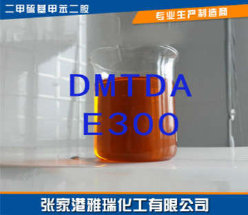 Dimethylthiotoluene Diamine,DMTDA,E300 is an environmentally friendly low-toxic liquid diamine chain extender, mainly used in polyurethane elastomers, RIM (reactive injection molding), SPUA (sprayed polyurea elastomer) and adhesives, and can also be used as epoxy resin curing It has been widely used in polyurethane rubber rollers, medicine, stamping and molding, etc. In addition, it is widely used in automobiles, metal mines, textiles, papermaking, and printing industries. It is a new type of polyurethane elastomer curing crosslinking agent. , Equivalent to Ethancure 300.
